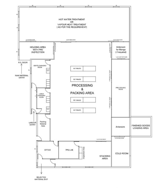 Pack house is applicable for handling and processing for all horticulture produce viz fresh fruits, vegetables etc. for export.
